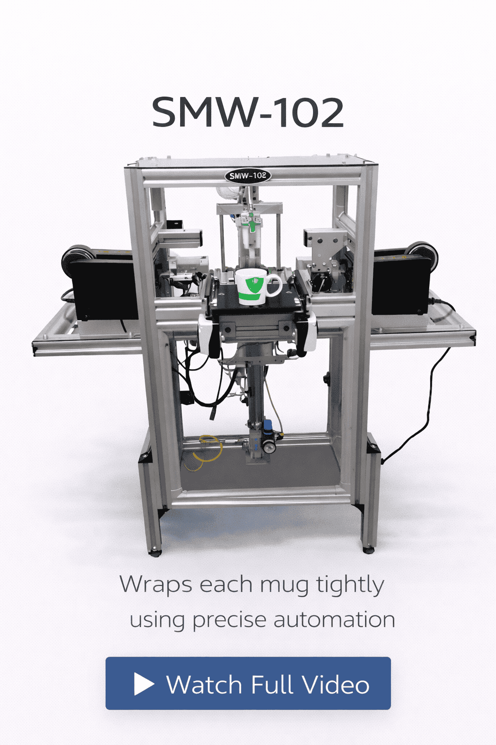 Wraps each mug tightly using precise automation